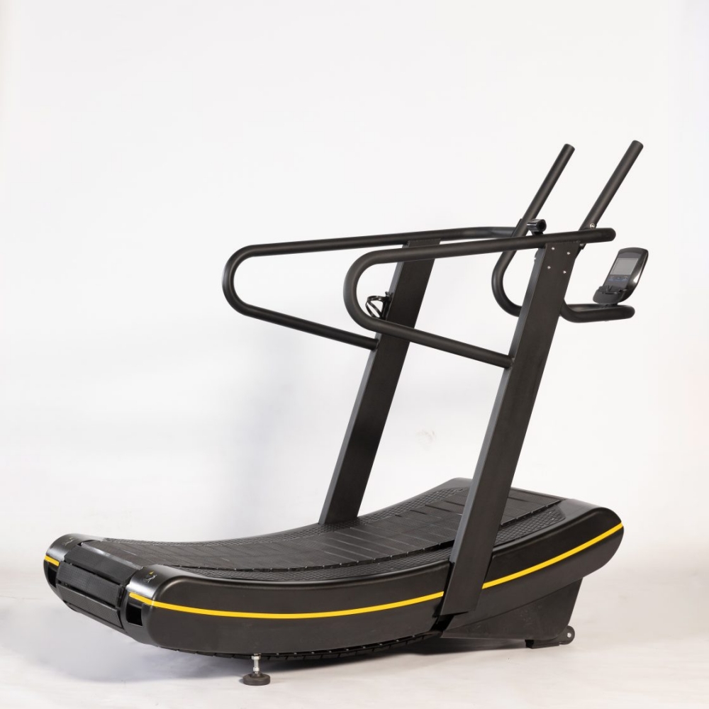 (4) Gebogen loopband– Voor 8 km hardlopen en echte wegweerstandHardlopen maakt meer dan 50% uit van HYROX en vormt de basis van uithoudingsvermogen. Vergeleken met traditionele gemotoriseerde loopbanden passen gebogen loopbanden beter bij HYROX-training: ze zijn zelfaangedreven, simuleren echte wegweerstand en verbeteren het loopverbruik en het uithoudingsvermogen van de benen zonder passieve beweging.